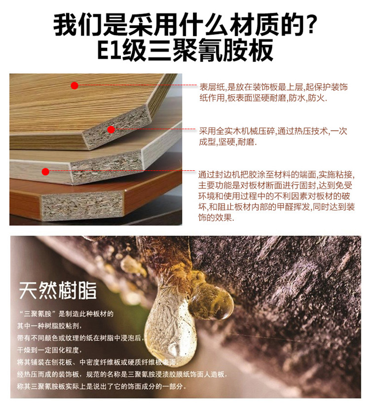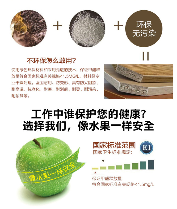 基 材:綠色環(huán)保E1級優(yōu)質(zhì)防火板(三聚氰胺板),抗性硬度良好,具有防火